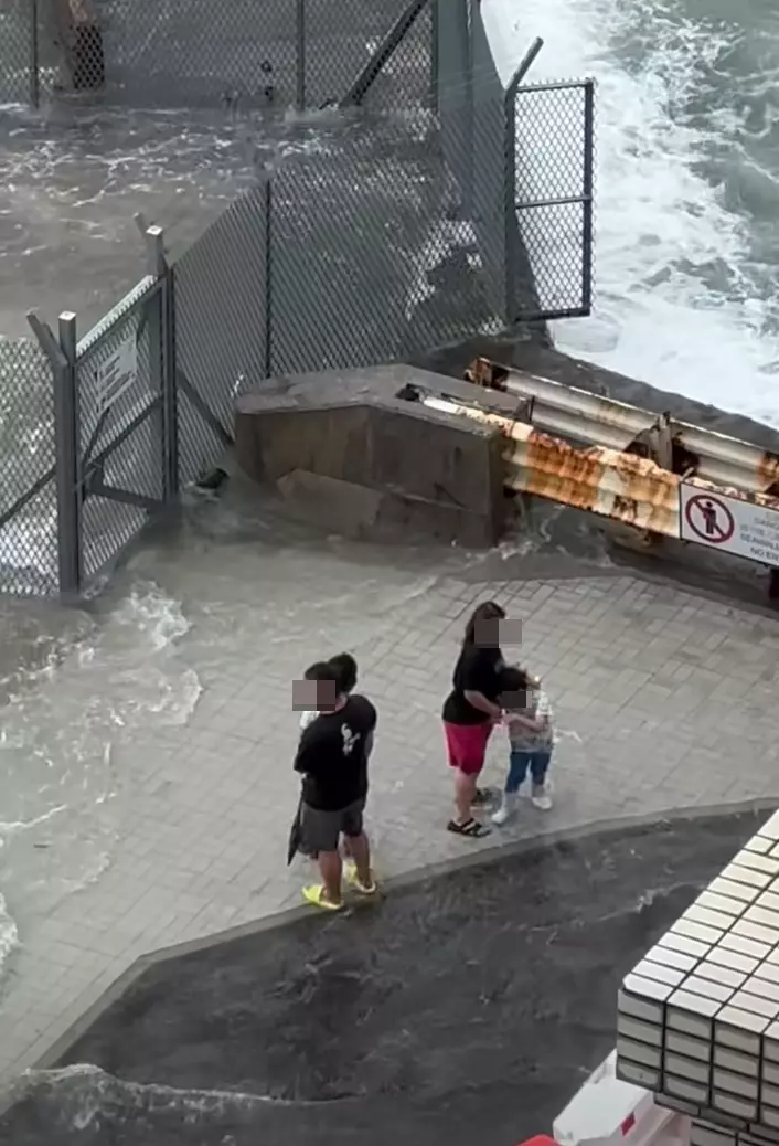 警方西區警區刑事總督察張蔚珊表示,警方留意到9月24日網上社交媒體有一段短片流傳,片中所見有兩名成人,帶同兩名男童,到港島西區堅尼地城的新海旁近加多近街交界的岸邊觀浪。 張說當時海有湧浪,海水已經開始衝上行人路,但兩名成人仍然帶着小童逗留拍照,當時極有可能被大浪沖走的風險,亦有可能對兒童造成嚴重傷害,危及生命。