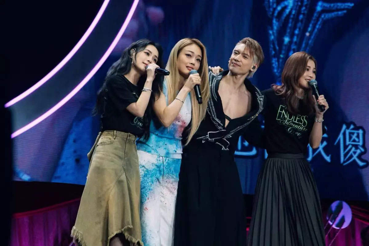 到Encore環節,「龍虎豹」容祖兒和Twins蔡卓妍(阿Sa)和鍾欣潼(阿嬌)由升降台登上舞台,與Kenny合唱《死性不改》。