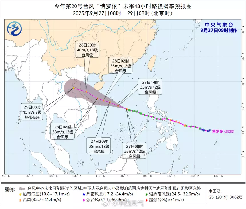 颱風博羅依正在快速向海南島南面海域靠近,將對廣東西部海域造成較大影響。廣東省防總27日啟動防四級應急響應。