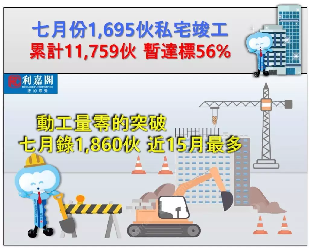 至於今年首7個月累計只有2,874伙私宅動工,較去年同期仍跌37%,創自2011年以來的十五年同期最低。這顯示早前發展商在經濟環境不確定性下,仍然採取較為謹慎的開發策略。
