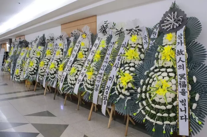 很多韓國演藝圈、文化界人士送上悼念花圈。 網上圖片