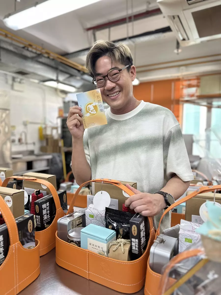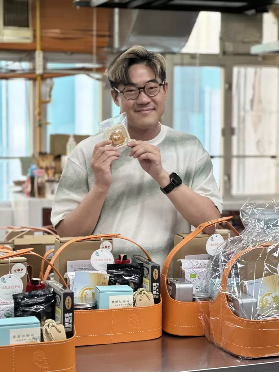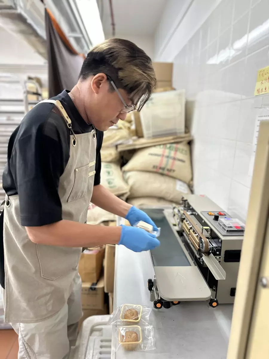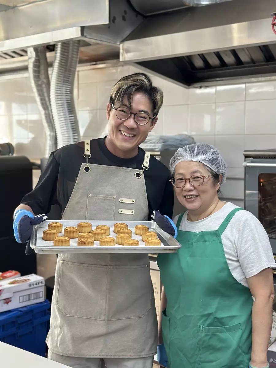 啟豪為月餅甚至參與包裝步驟。