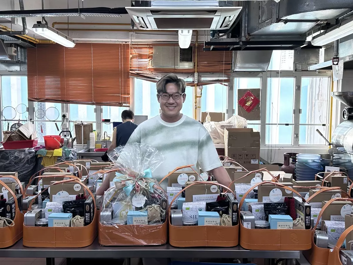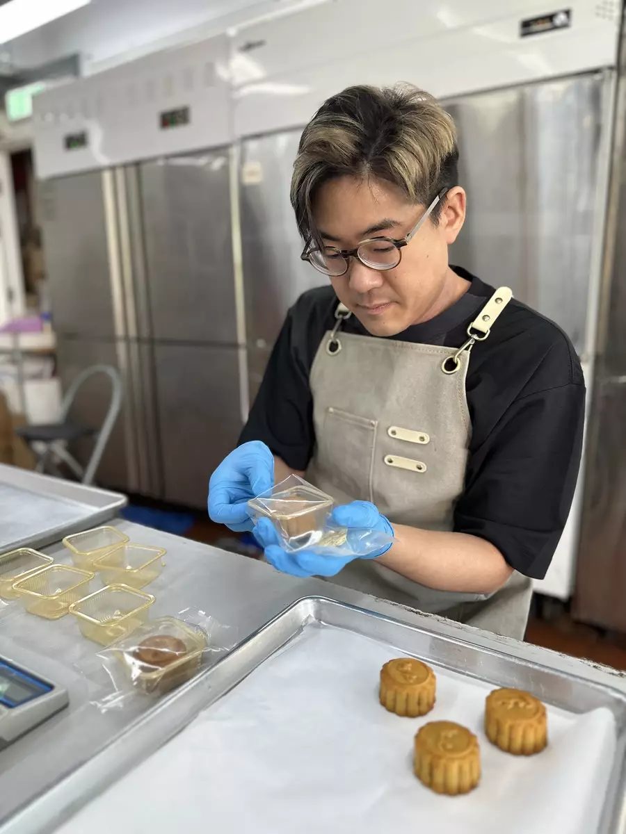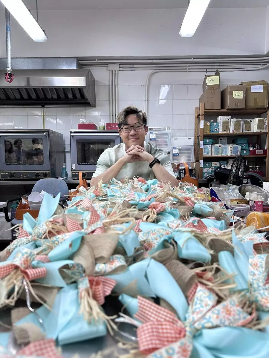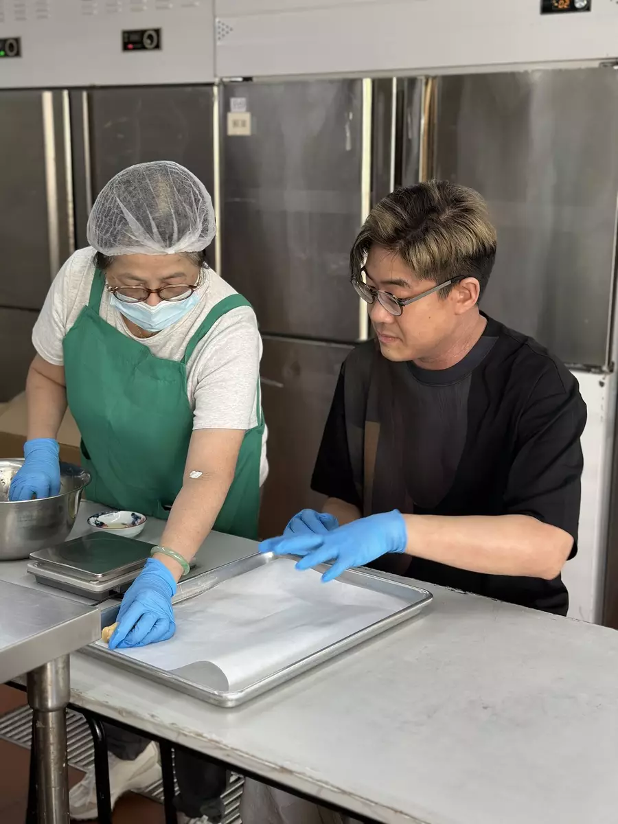 啟豪為月餅甚至參與包裝步驟。