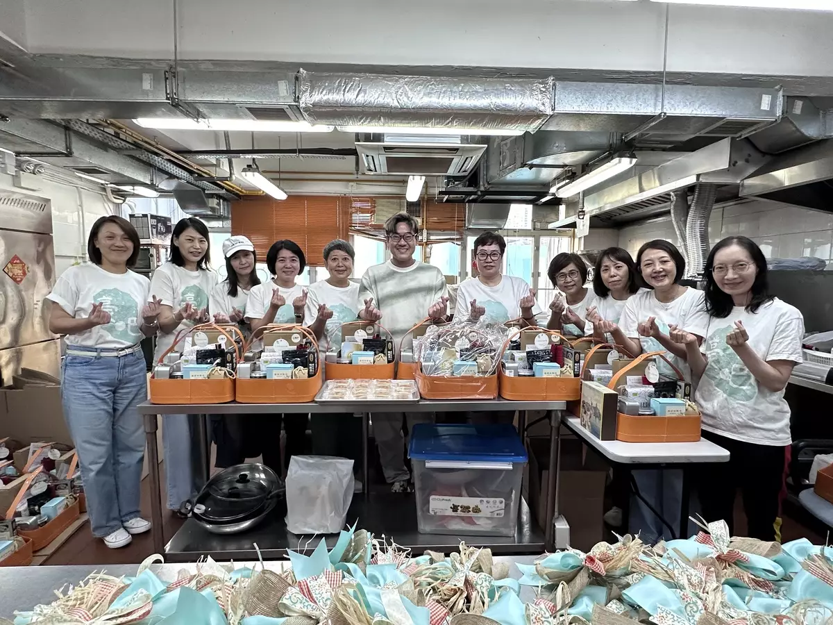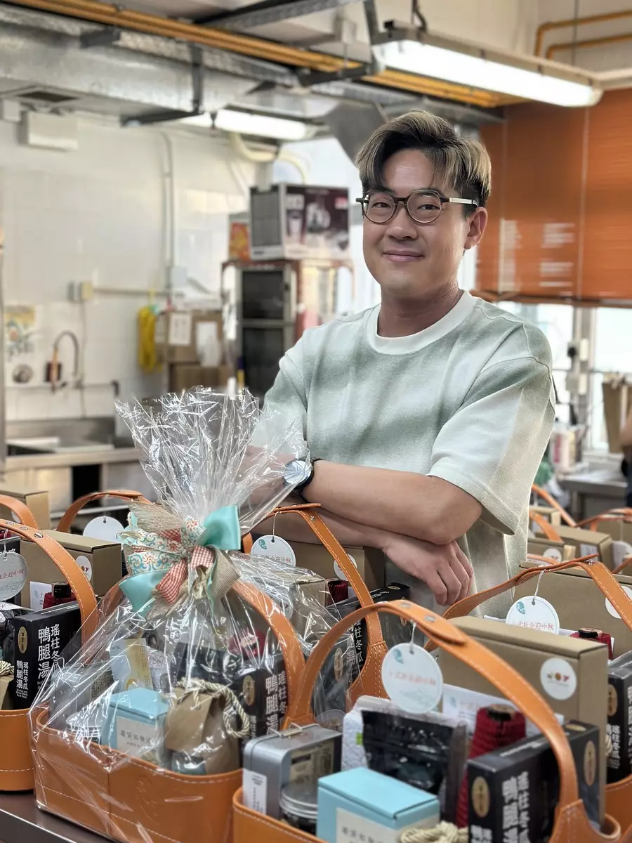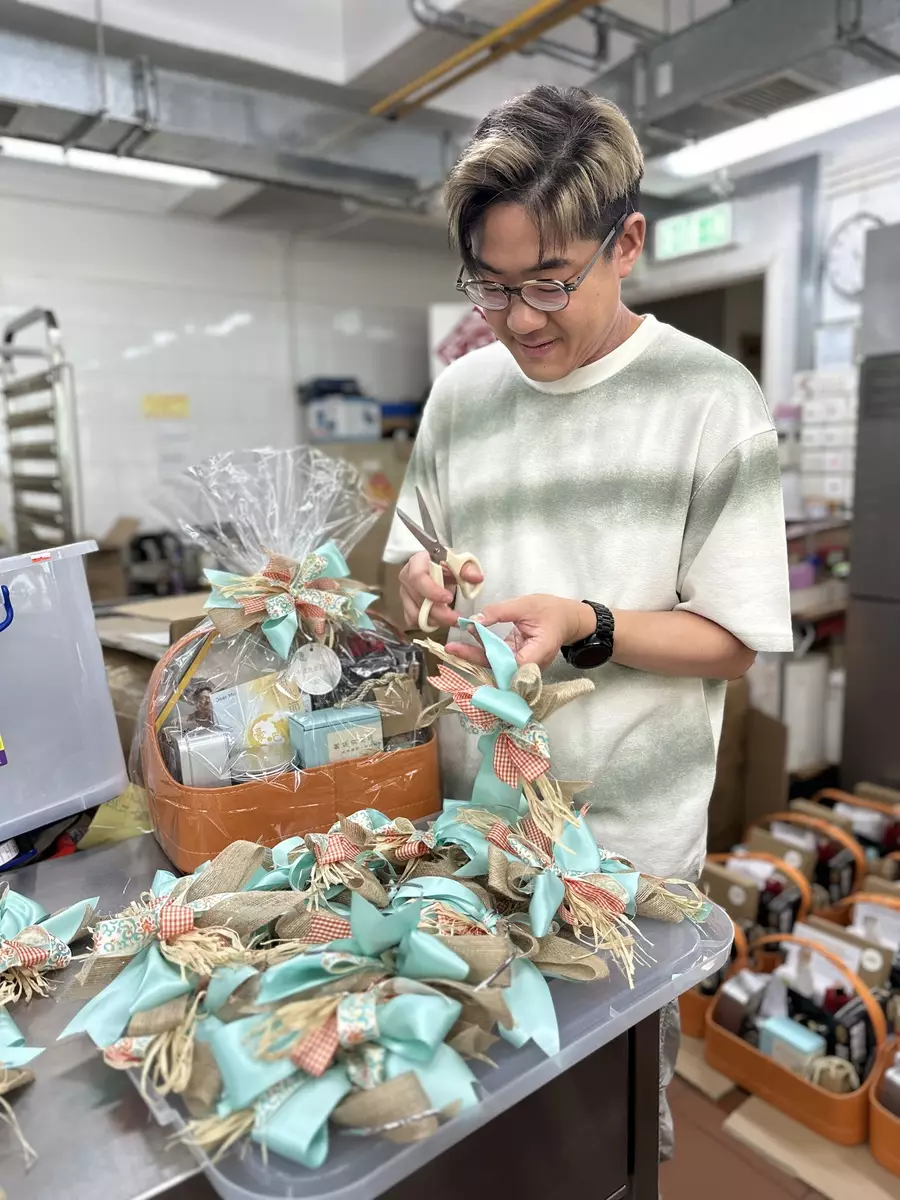 啟豪亦參與禮籃包裝。