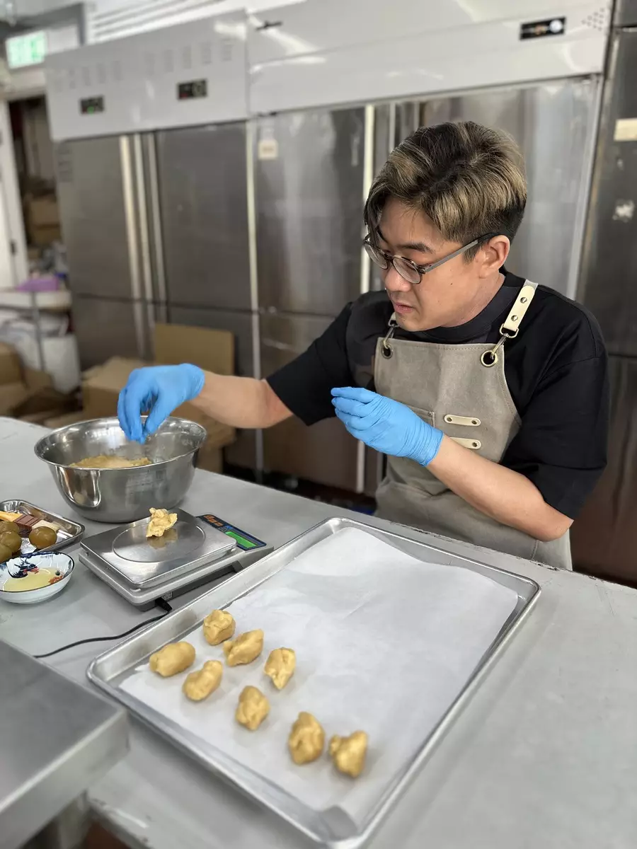 啟豪所製作之月餅將以盲盒方式放進禮籃內。