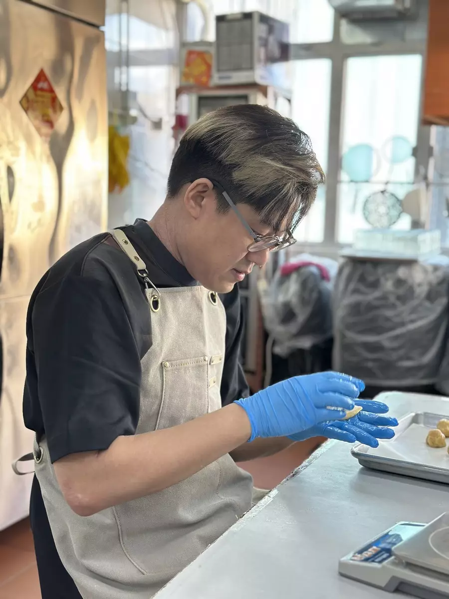 啟豪形容最困難步驟為以蓮蓉平均包裹蛋黃。