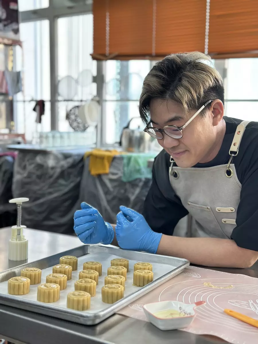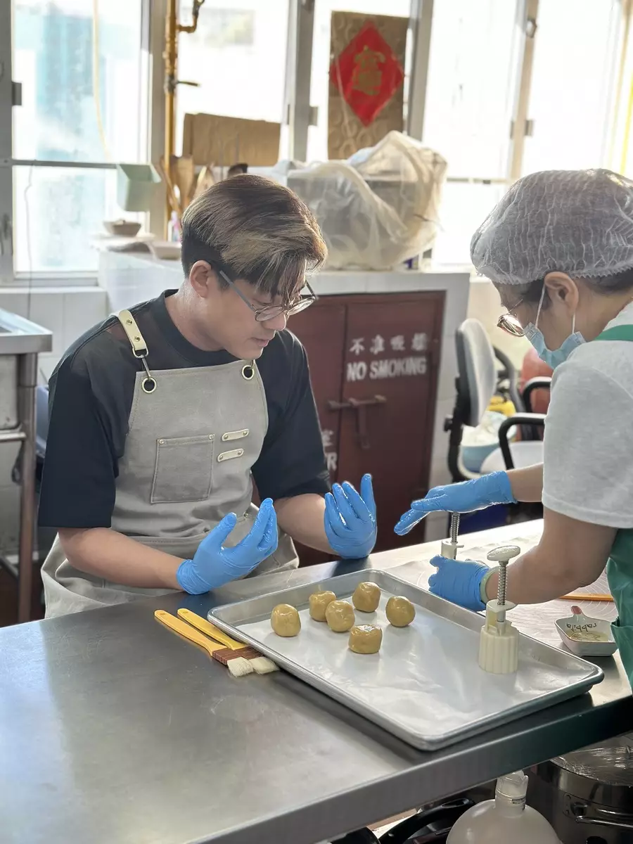製餅師傅大讚啟豪親手所製作的月餅似模似樣甚具專業水準。