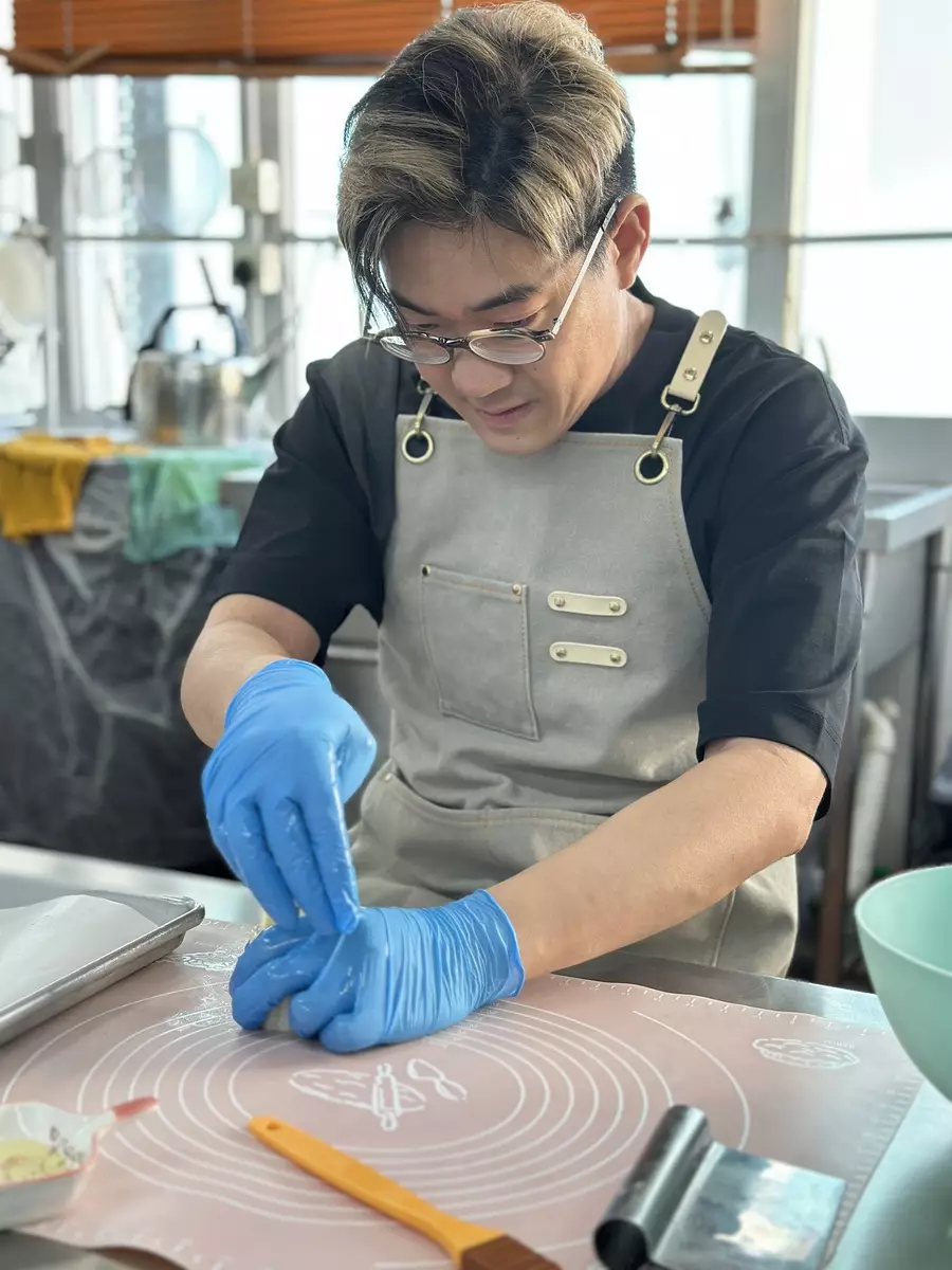 啟豪跟足所有步驟親手炮製「豪吧」月餅一絲不苟。