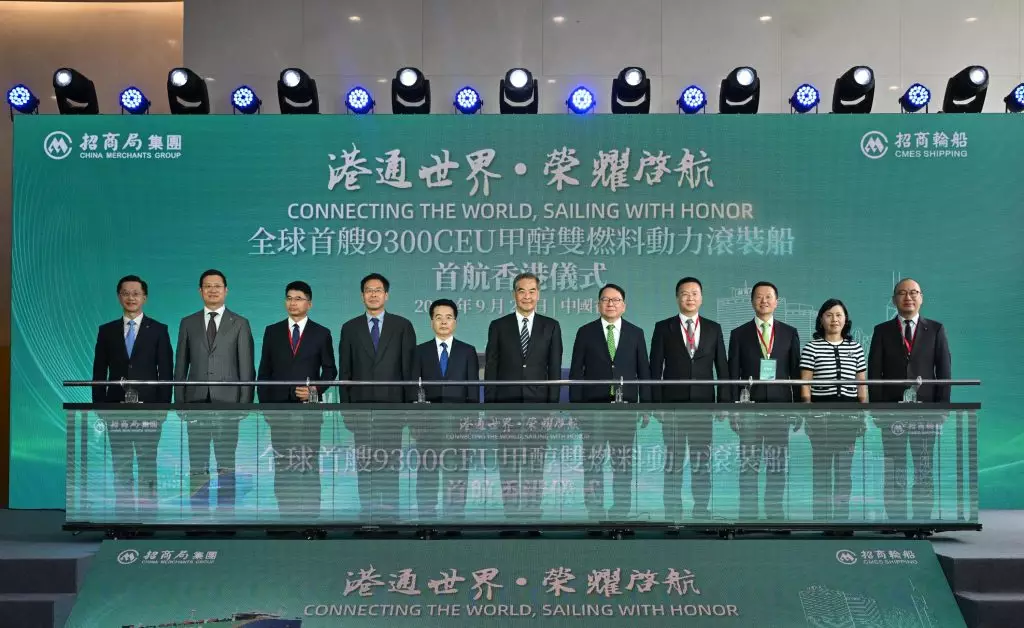 全球第一艘甲醇雙燃料動力滾裝船「港榮」輪舉行首航香港儀式,運輸及物流局局長陳美寶表示,這艘運輸船在設計上採用領先、突破的前沿技術,可使用綠色甲醇作為船舶燃料,減少70%以上的溫室氣體排放。