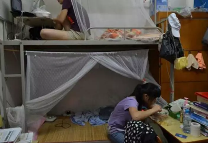 然而這組照片亦曝露了女生宿舍不願示人的髒亂一面,有女學生檯面擺滿雜物。更有女生在床上鋪張小桌子,在上面又食又飲,似乎全然不顧形象。