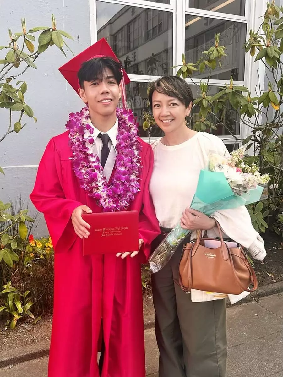 楊婉儀近日在IG晒出與兒子Jonah的合照,現年18歲的Jonah戴著眼鏡、穿著簡單藍色Tee,明顯比之前更成熟穩重,並於今年升讀三藩市州立大學,令媽媽相當欣慰。
