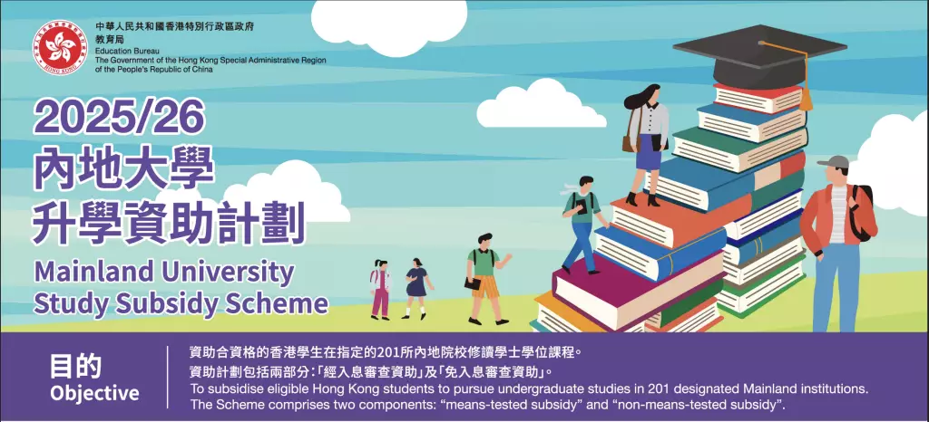 教育局提醒有意申請2025/26學年內地大學升學資助計劃的合資格香港學生,須於10月13日或之前,透過內地大學升學資助計劃網上申請平台(musss.edb.gov.hk)遞交申請,或把填妥的申請表格以郵寄方式遞交教育局。