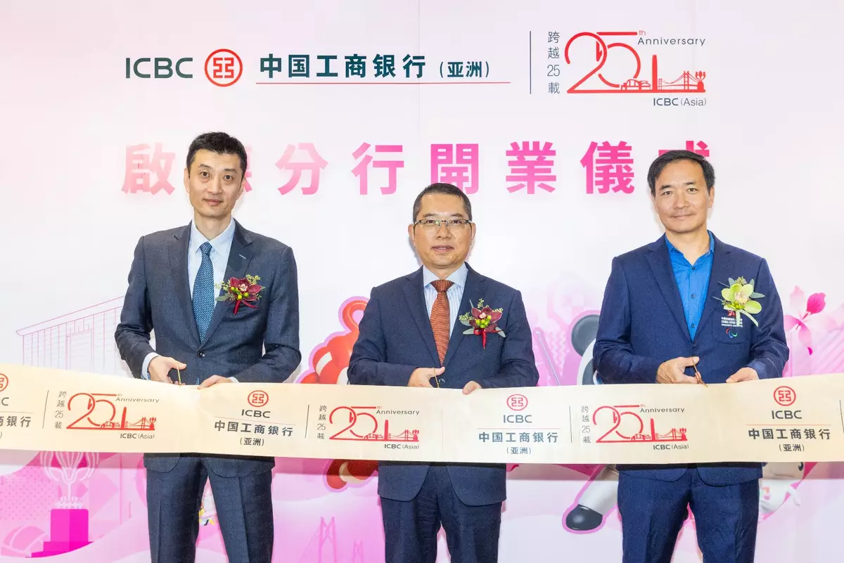 中國工商銀行(亞洲)全新啟德分行於2025年11月7日隆重開業,並將於十五運會期間延長營業時間,透過全方位金融服務及創新賽事支持舉措,全力保障十五運會各項賽事順利舉行。圖為:中國工商銀行(亞洲)副董事長、執行董事兼行政總裁武龍(中)、中國工商銀行(亞洲)執行董事、副行政總裁兼替任行政總裁顧旋(左)、中國香港殘疾人奧委會董事何蔚文(右)。