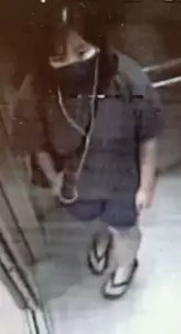 失蹤女子羅麗容最後露面時身穿深色上衣、藍色短褲、黑色拖鞋,戴深色口罩及攜有一個深色斜揹袋。政府新聞處圖片
