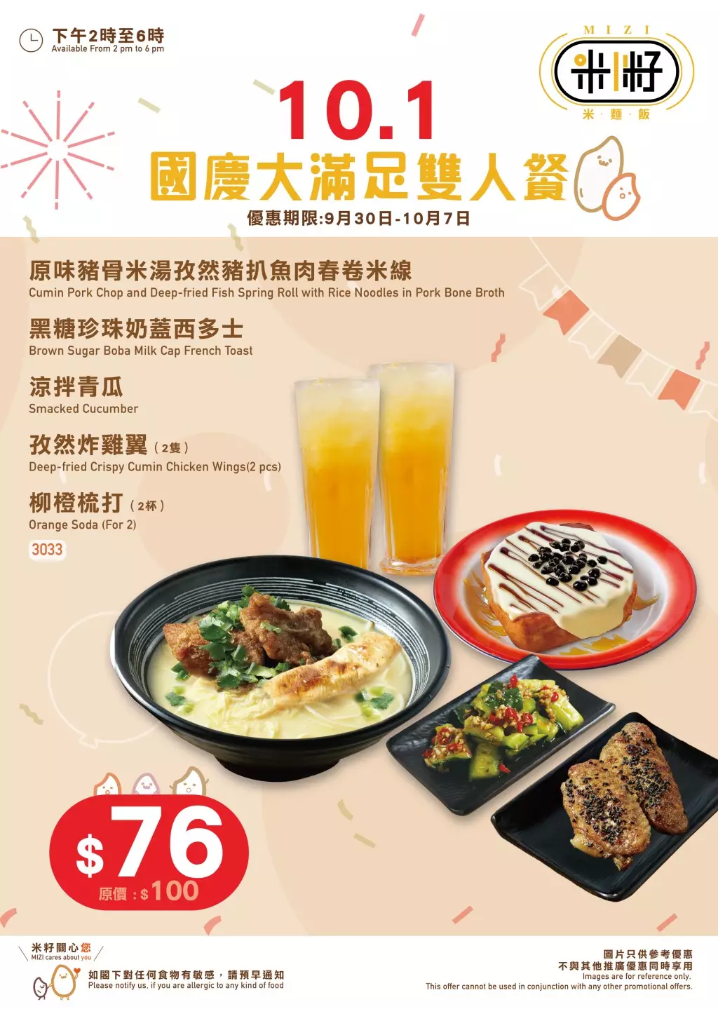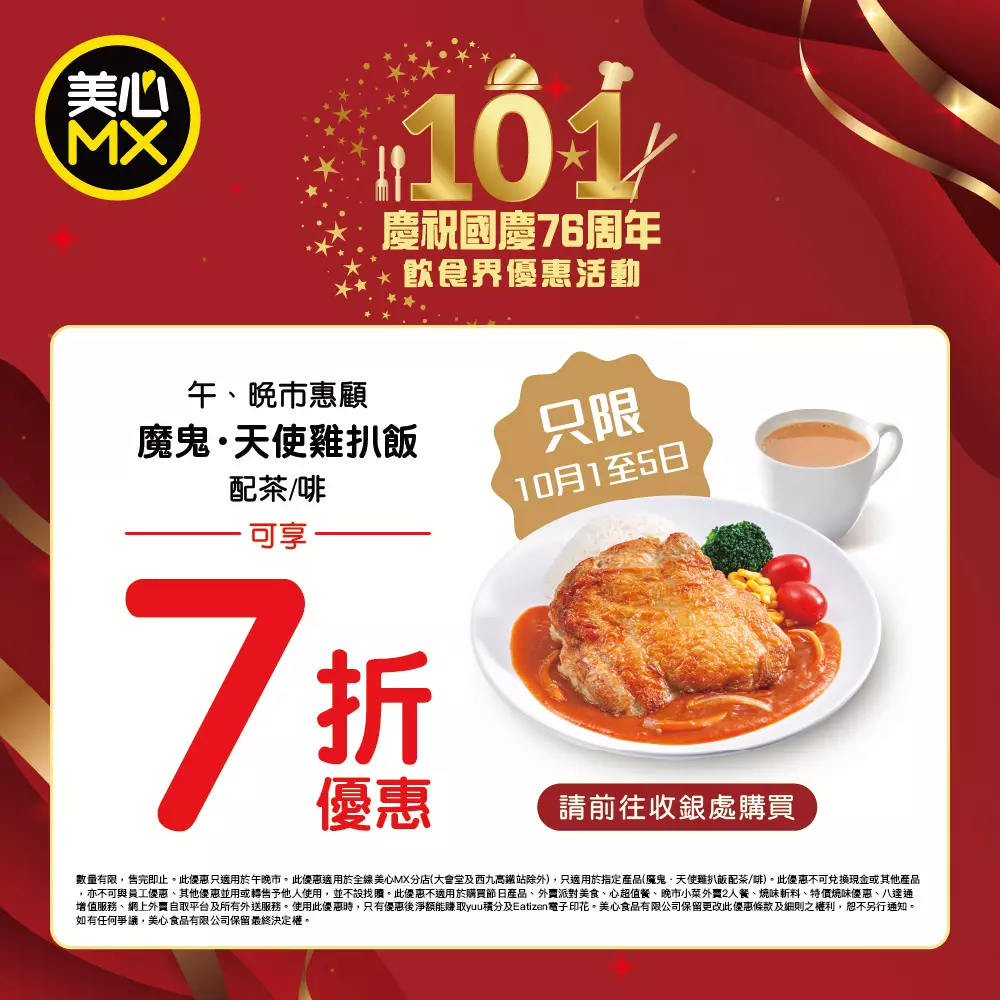 優惠: 提供$76賀國慶套餐。