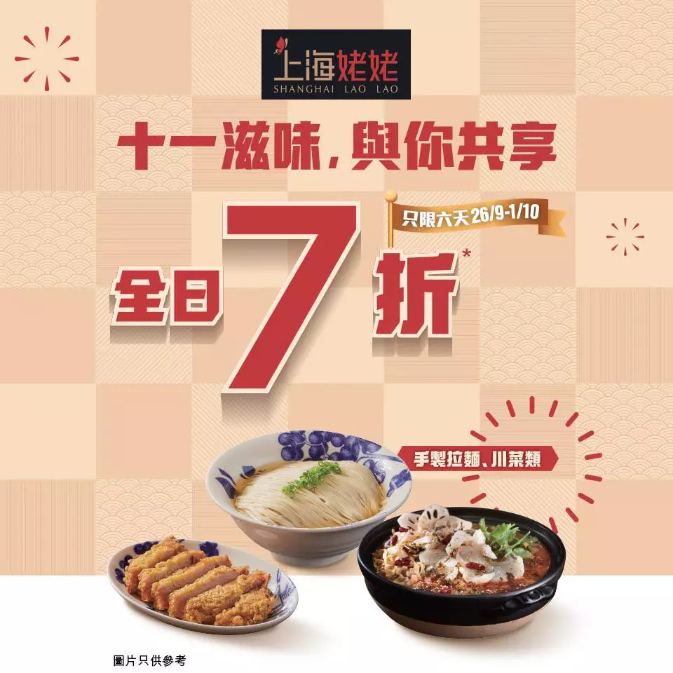 優惠: 惠顧拉麵類及川菜類可享7折。