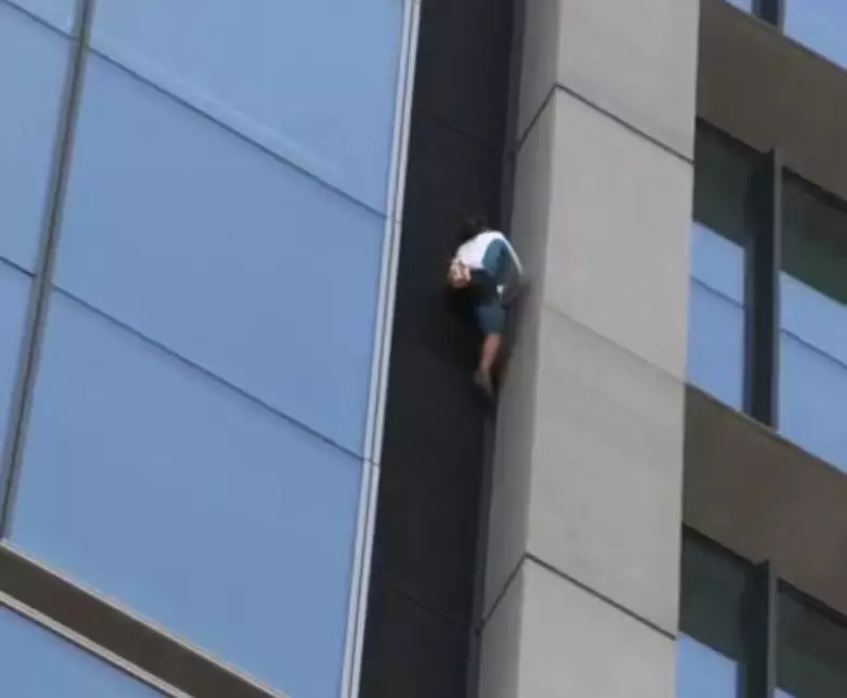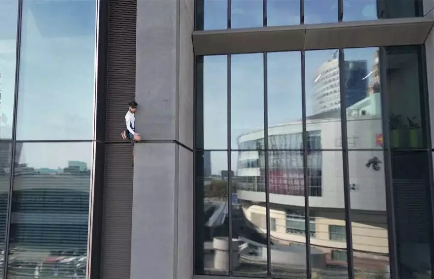 無裝備徒手攀牆 身手敏捷引路人圍觀
