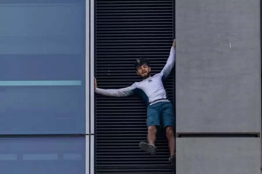 極限攀登者徒手攀爬歐盟最高樓至230米處遭警方逮捕。X平台圖片