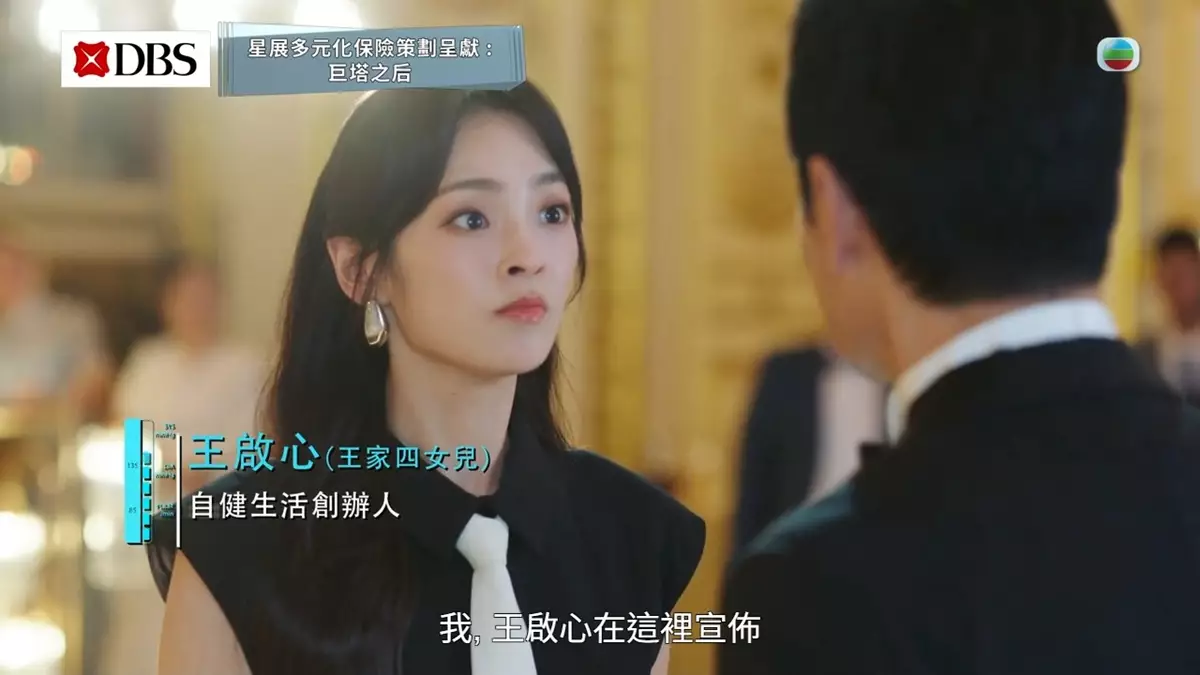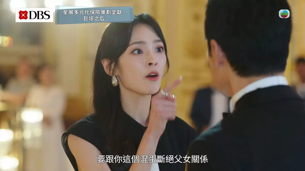 《星展多元化保險策劃呈獻:巨塔之后》昨晚(9月29日)首播,除了宣萱與鍾鎮濤的世紀婚禮、王家成員釋數華麗/靚爆/型格出場惹關注外,王家四女啟心(陳楨怡飾)大鬧婚宴一幕亦是焦點所在!對父親早有積怨的啟心,除在世紀婚宴上、不止一次大鬧父親王進濤(鍾鎮濤飾)X街、用酒怒潑鍾鎮濤外,還掟爛玻璃杯兼揚言與王進濤斷絕父女關係,期間還拋出一句:「一條人命嚟」等充滿懸念的對白,將劇情推向高潮之餘還相當搶焦!