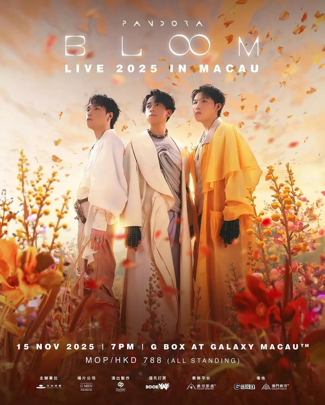 樂隊Pandora近日宣布其全新主題演唱會《BLOOM LIVE 2025》香港兩場門票開售後迅速售罄,樂迷反應空前熱烈。為回應廣大「盒仔」(樂迷暱稱)的支持與期待,Pandora正式宣布將演出延伸至澳門,定於2025年11月15日(星期六)晚上7時假「澳門銀河」– G Box舉行,帶領樂迷進入一場以大自然為靈感的音樂饗宴。