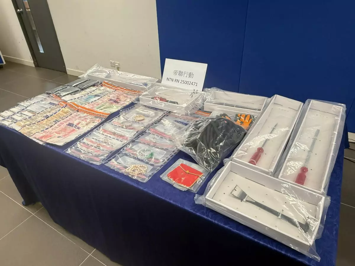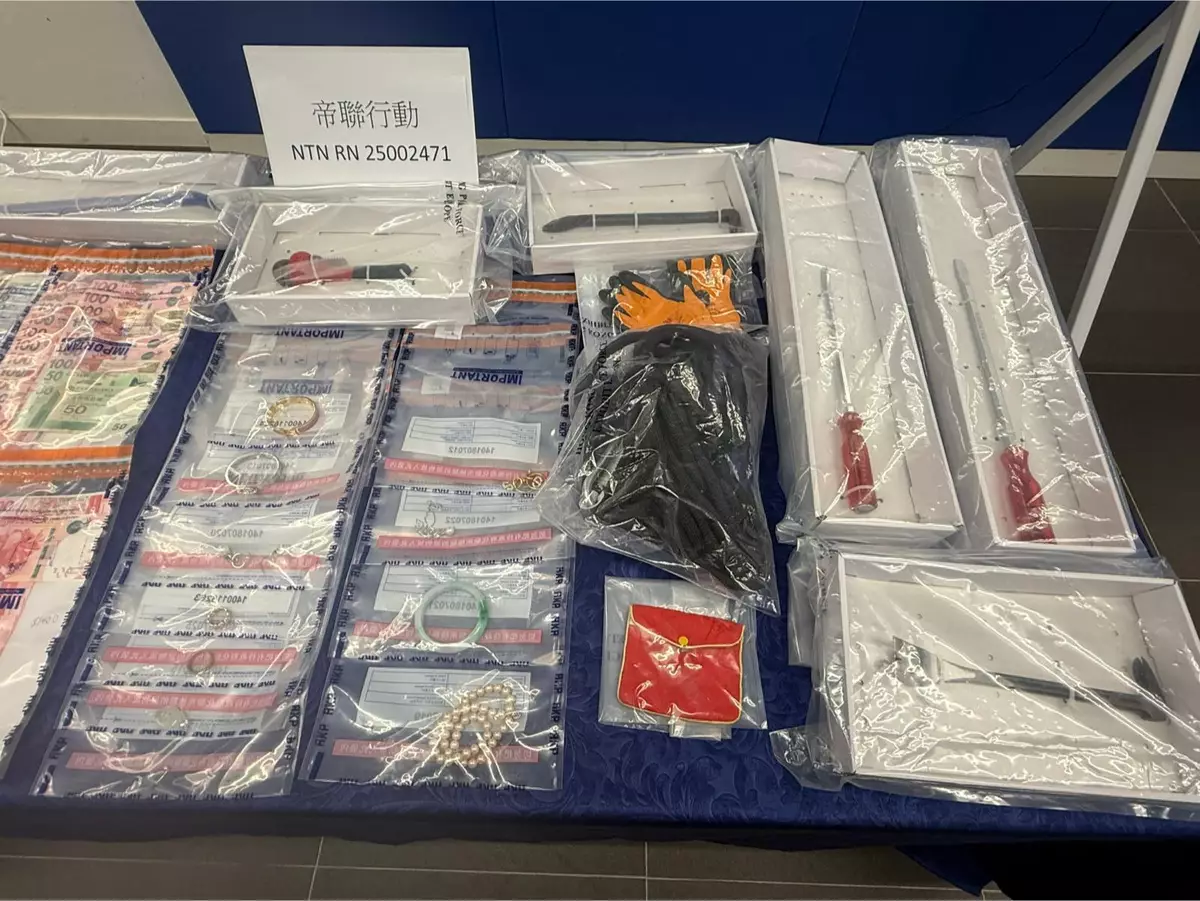拘捕過程中成功起回部份失物,包括一些首飾,以及檢獲相信是疑犯用作撬開門窗的爆竊工具。4名被捕男子現正被扣留調查。