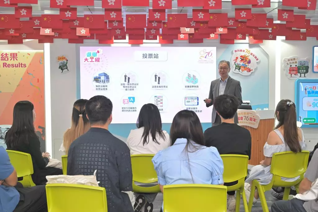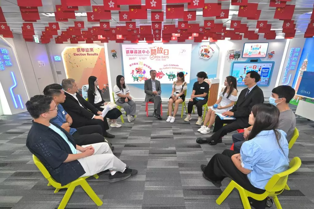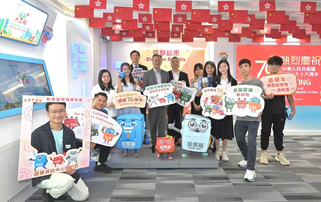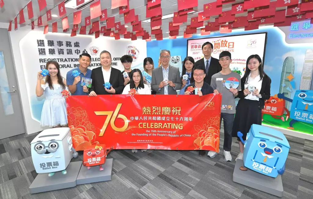 選舉事務處選舉資訊中心星期二同星期三兩日舉辦賀國慶開放日,選管會主席陸啟康與青年團體就選舉相關議題,包括如何確保選舉公開、誠實和公平進行意見交流,到訪的青年亦參與中心的不同互動遊戲,以及與場內的國慶布置和吉祥物「票箱家族」「打卡」留念。
