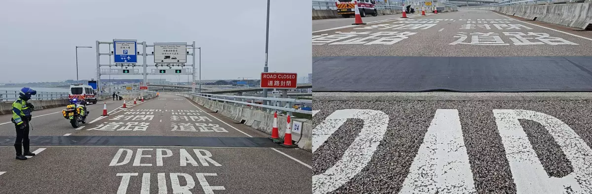 警方安排在橋上伸縮縫臨時鋪膠墊,避免自行車手爆胎。