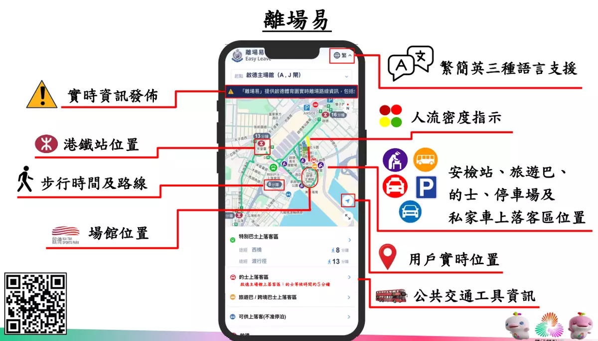 啟德體育園將推出全運會專屬版『離場易』,整合安檢與交通資訊。
