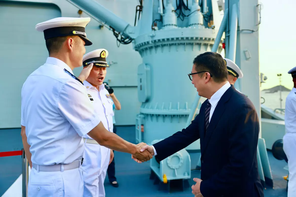 鄧炳強在他的社交平台說,艦上有一系列專業裝備同先進的訓練設施,充分展現國家海軍的現代化實力同多元作戰能力。