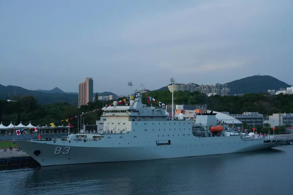 戚繼光艦與沂蒙山艦星期二(30日)抵達香港並停泊於昂船洲軍營,與香港市民慶祝中華人民共和國成立76周年。