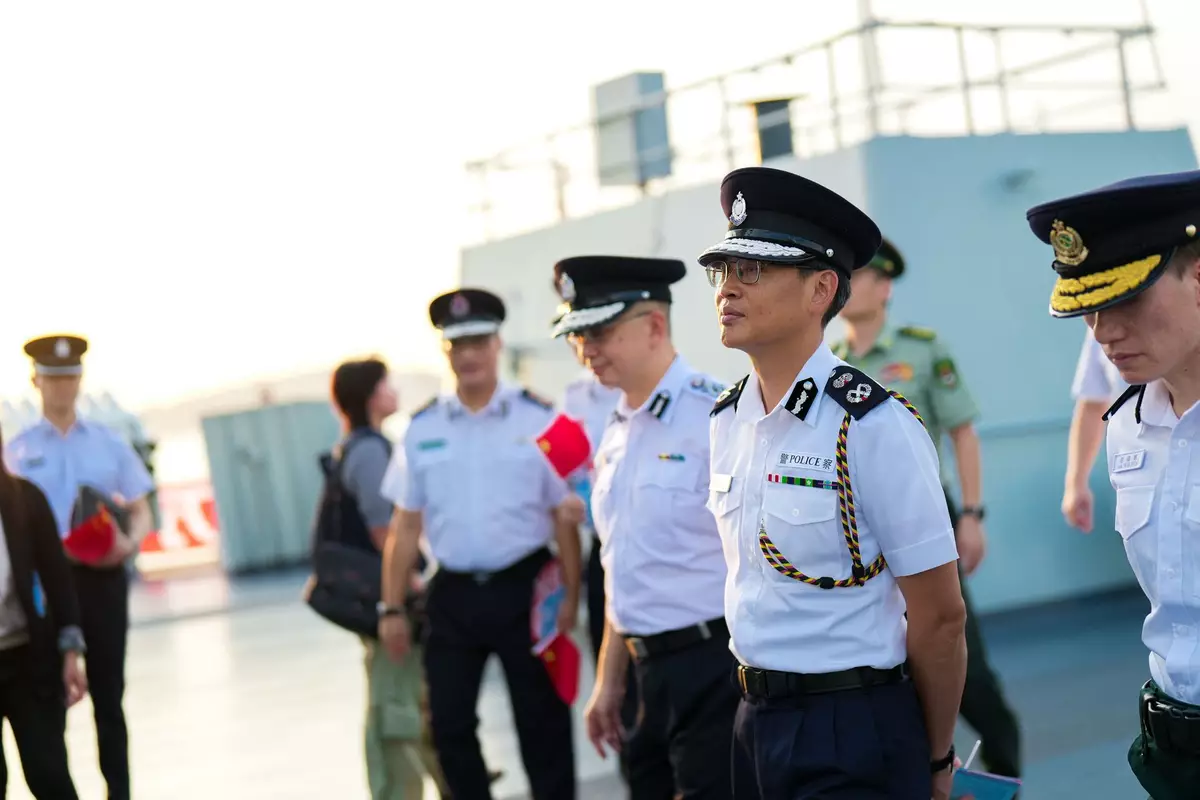 保安局局長鄧炳強、警務處副處長(管理)陳俊燊及各紀律部隊代表一同登艦參觀。