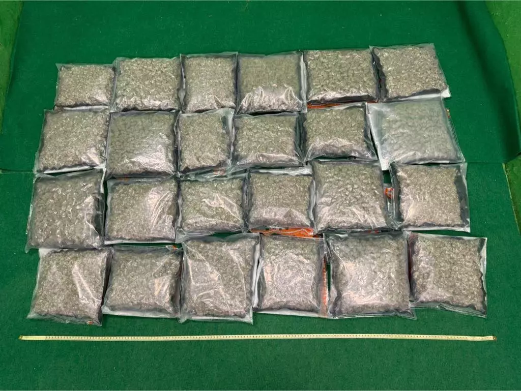 香港海關於機場檢獲約二百八十萬元懷疑大麻花。政府新聞處圖片