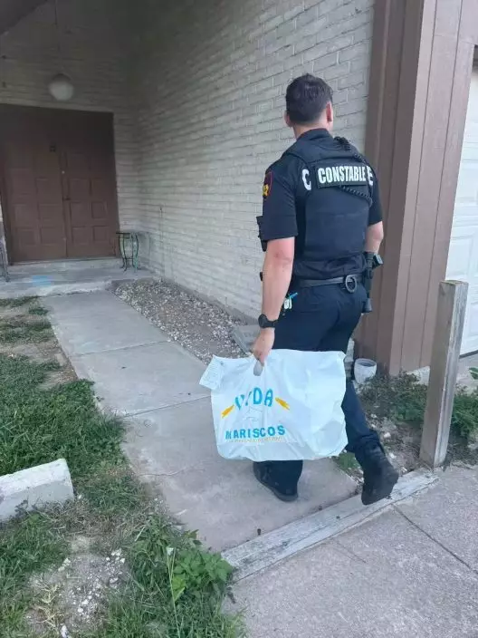 美國警員拘捕一名涉嫌使用假車牌的外賣員後好心幫忙送餐,結果意外嚇親顧客。