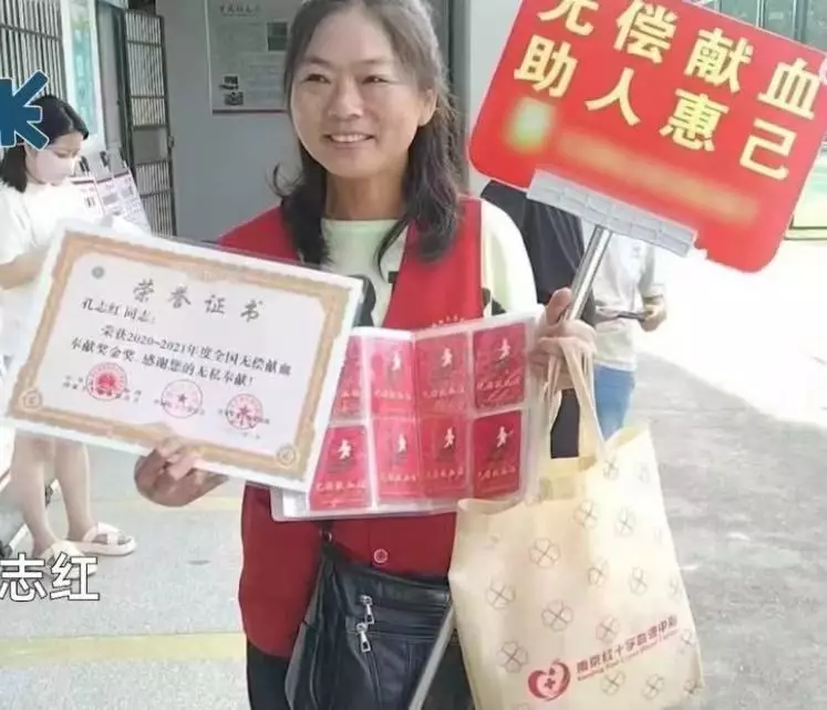 綜合內媒報導,江蘇南京一名54歲婦人孔志紅的丈夫於13年前因罹患白血病離世。由於丈夫生前因受益無償獻血延續生命,令她心懷感激,並深刻體會到陌生人善舉的力量。因此,她自2013年起毅然投身無償獻血行動,至今已堅持獻血12年,累計完成75次。