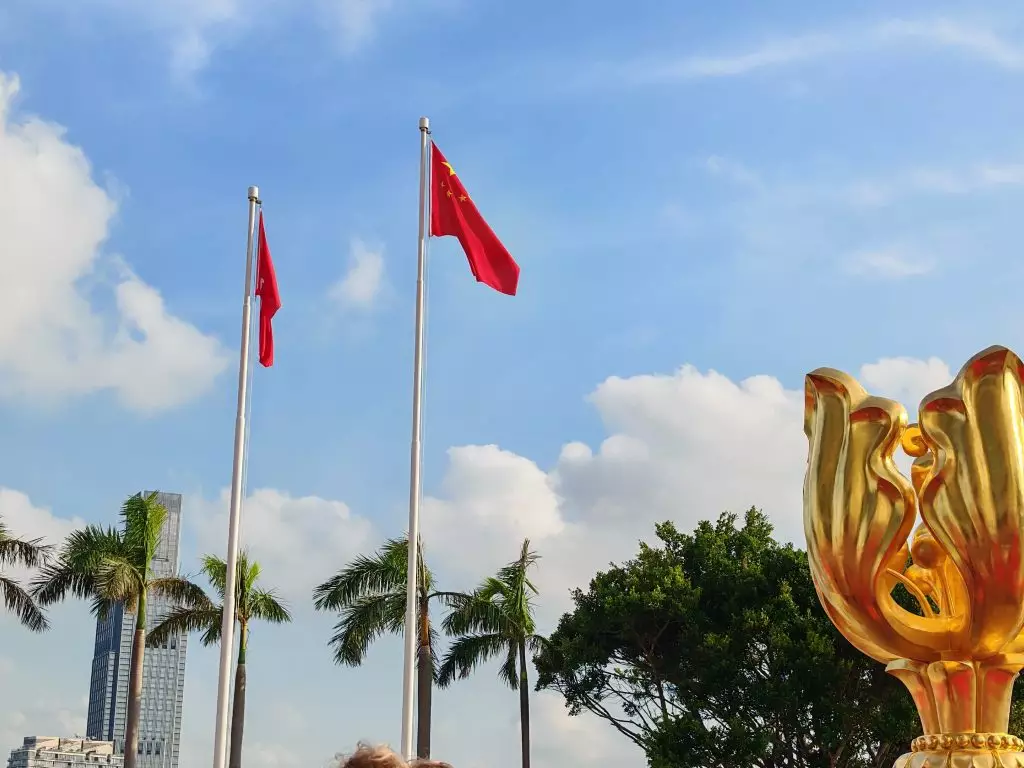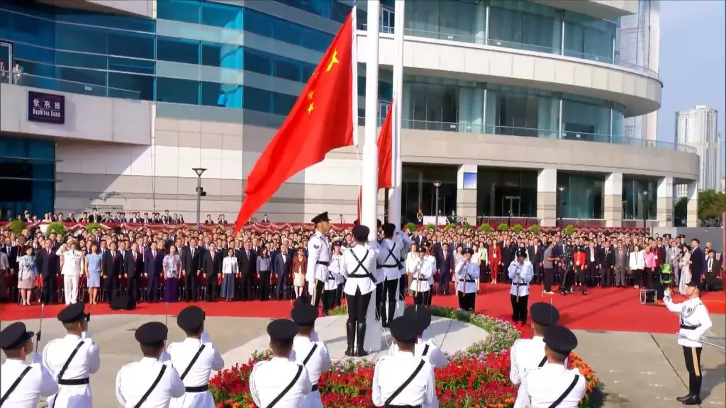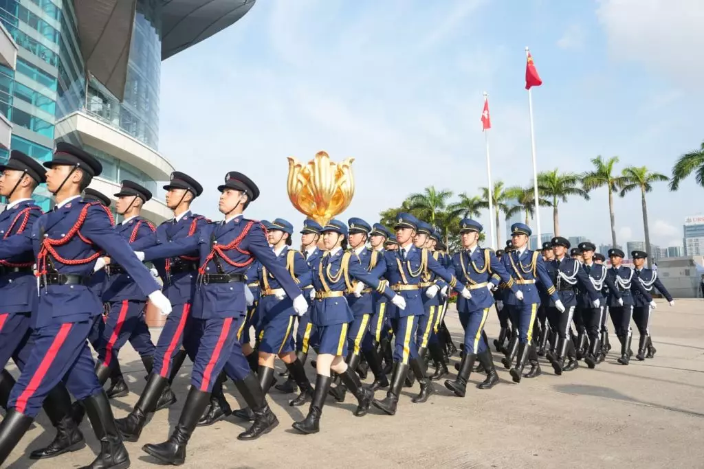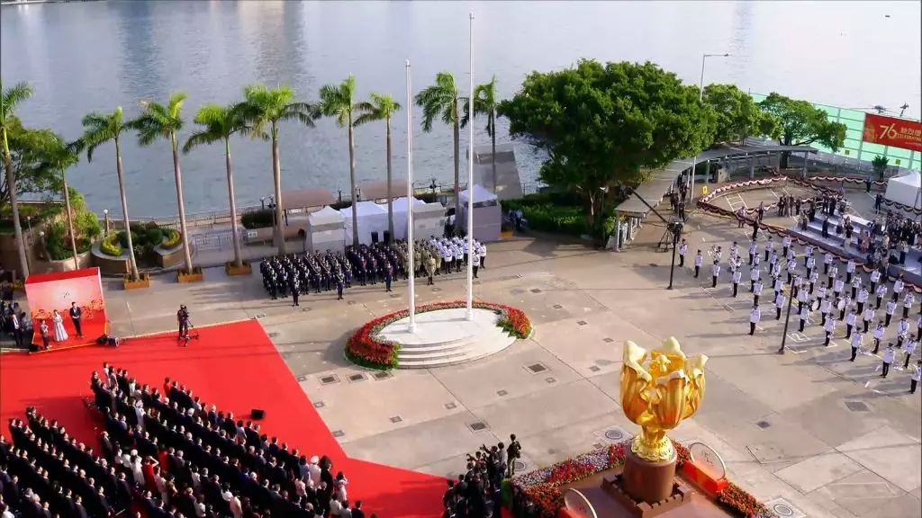 10月1日是中華人民共和國成立76周年,灣仔金紫荊廣場早上8時舉行升旗儀式。