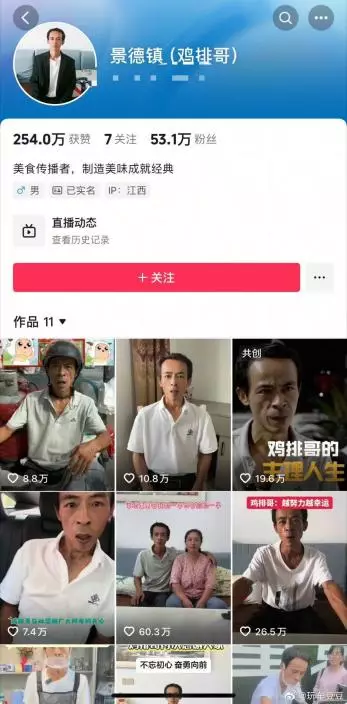 鷄排哥的社交媒體賬號,截至9月28日下午,粉絲數就狂飆至30.5萬,單條最高點贊達到70.6萬。網絡圖片