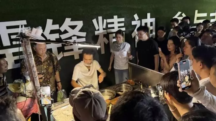 網民湧來爭相光顧「雞排哥」和打卡,令其攤前人滿為患,城管也要派人來協助維持秩序。