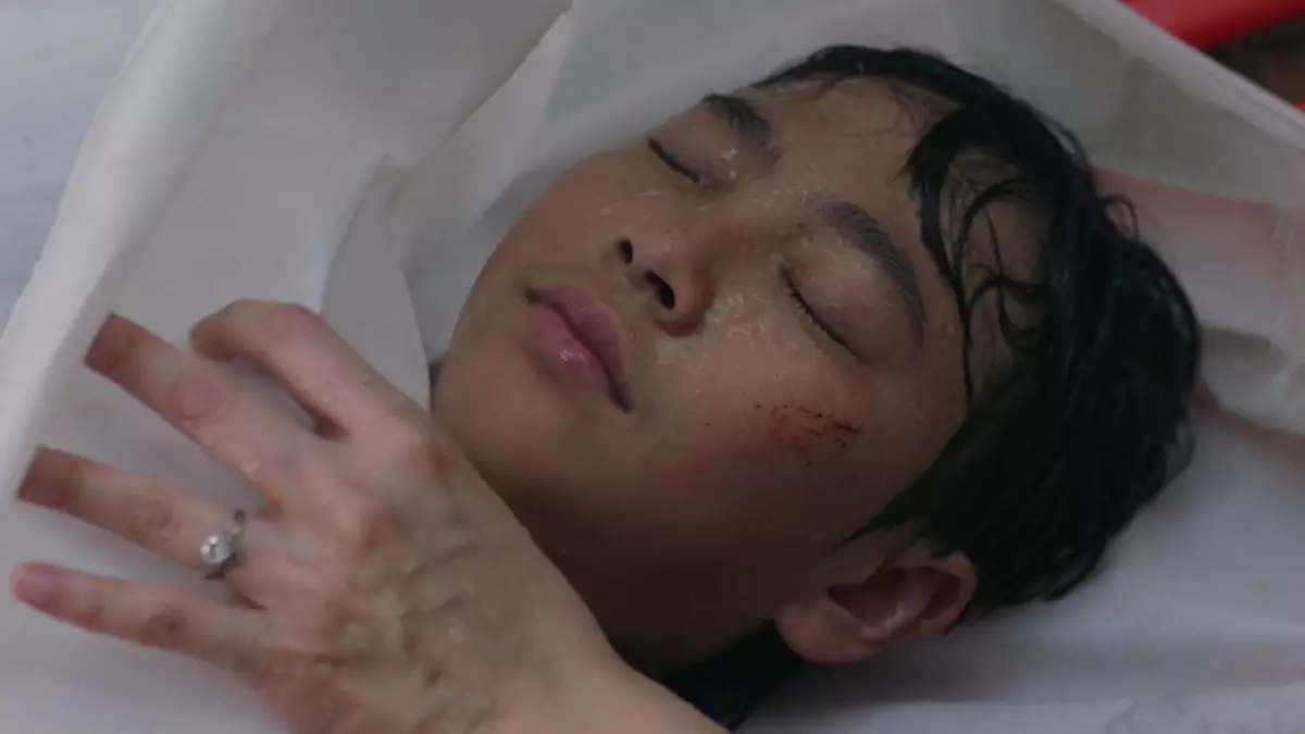 當阿Moon發現屍體原來是自己的兒子,她馬上由強裝冷靜變成徹底崩潰、一張面更是哭至五官完全扭曲、眼淚鼻涕橫飛兼整個人跌坐地上,攬住阿女一齊喊。