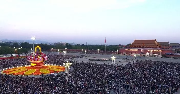 特地帶外孫來北京感受國慶氛圍的浙江旅客劉女士則帶備椅子、臉上貼上小國旗貼紙。她稱,數年前到北京時有疫情,未能到天安門觀看升旗,今次特別提早預約,形容國旗升起一刻內心激動;其14歲外孫形容,現場看升旗的場面,比觀看電視震撼得多,感到十分驕傲。