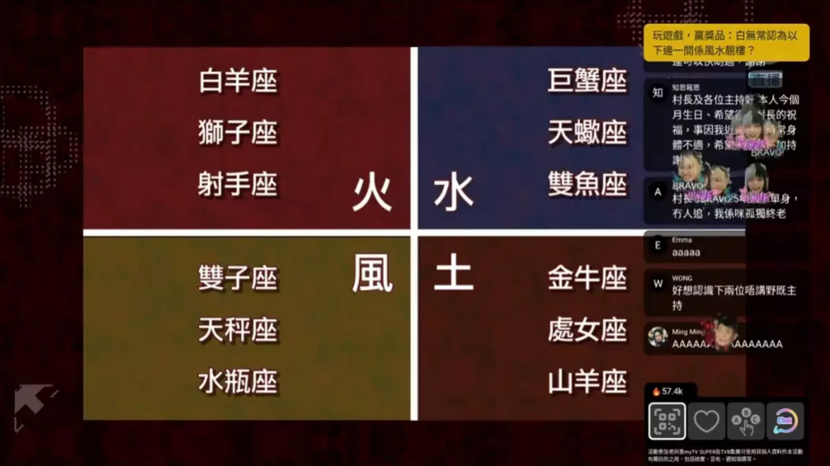 由梁思浩、黃紫恩(Jojo)及黃耀英(Darren)主持,TVB Plus(82台)靈異直播一小時節目《直播靈接觸》昨晚(9月30日)主題為「西方四元素」,請來塔羅師傅羅泳嫻(裸泳)。