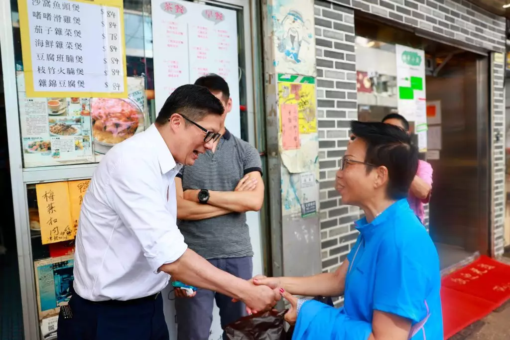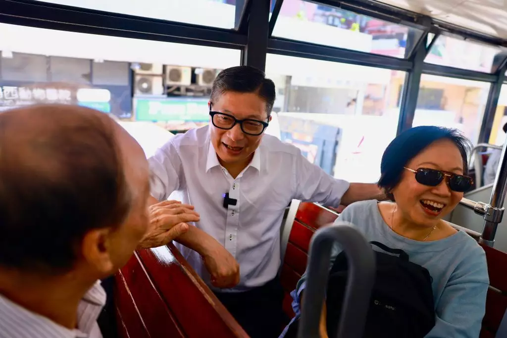鄧炳強笑言,「凍檸茶、焗豬扒飯、炸雞翼茶餐同西多,全部都係我鍾意嘅地道美食,非常滿足!」而茶餐廳一旁就是他當年每日搭巴士返學的車站,鄧炳強直言真係好懷念。飯後一行人去搭免費電車,沿途看著熟悉的街景,一邊與市民聊天,一邊感受兒時情懷。在國慶日繁忙的行程中,一餐午飯,一趟電車遊,十分療癒。「祝大家國慶快樂!」