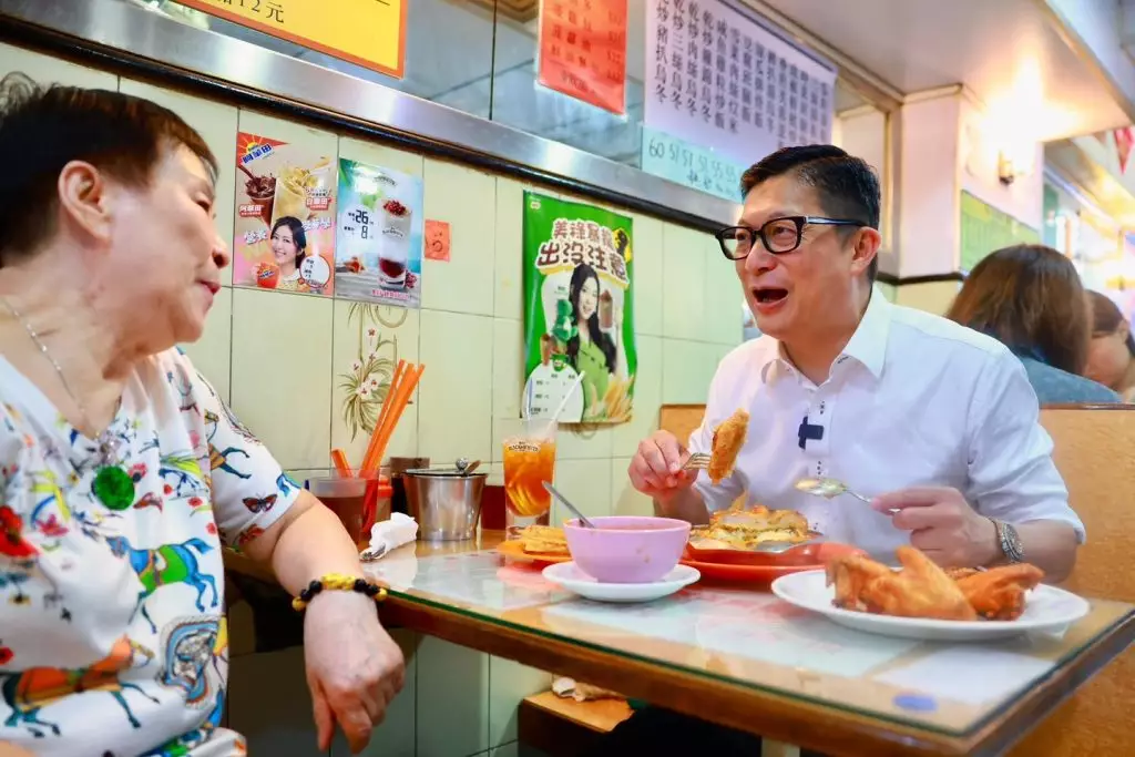 保安局局長鄧炳強在社交平台撰文指,10月1日全城賀國慶,不少餐廳及交通服務都有優惠。早上完成工作後,鄧炳強特別請同事一齊去自己兒時居住的西環,趁國慶日有優惠,到訪一間有60年歷史的茶餐廳食午餐。