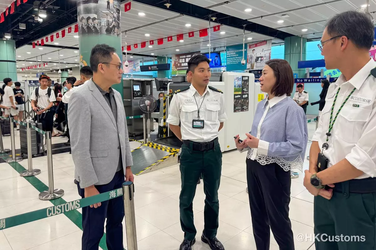 為迎接內地國慶黃金周和中秋一連8日長假期的訪港旅客及應對人流車流,香港海關積極部署,制訂一系列措施,確保各口岸通關暢順。海關高層連日到到各管制站視察,並為同事打氣。