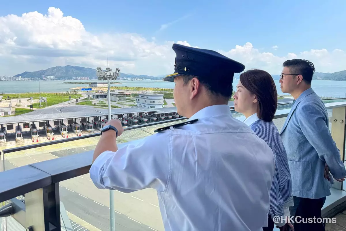 10月1日,海關助理關長(邊境及港口)蔣依莉到香園圍管制站、落馬洲支線管制站及港珠澳大橋香港口岸,實地視察通關情況。Madam蔣感謝前線同事們的專業和努力,堅守崗位,提供優質便捷清關服務。