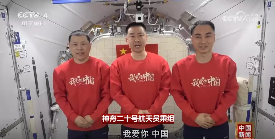 神舟二十號航天員乘組通過視像祝福祖國繁榮昌盛,祝福全國各族人民幸福安康。
