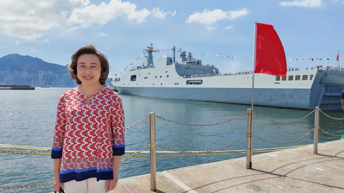 楊何蓓茵在社交網頁表示,她與不少市民一樣留港消費,享用餐飲優惠,在食肆購買蛋撻、叉燒批及自家製飲品,以行動支持本地餐飲業。她中午又參觀解放軍海軍「戚繼光艦」的先進裝備及設施等,感到十分驕傲和自豪。