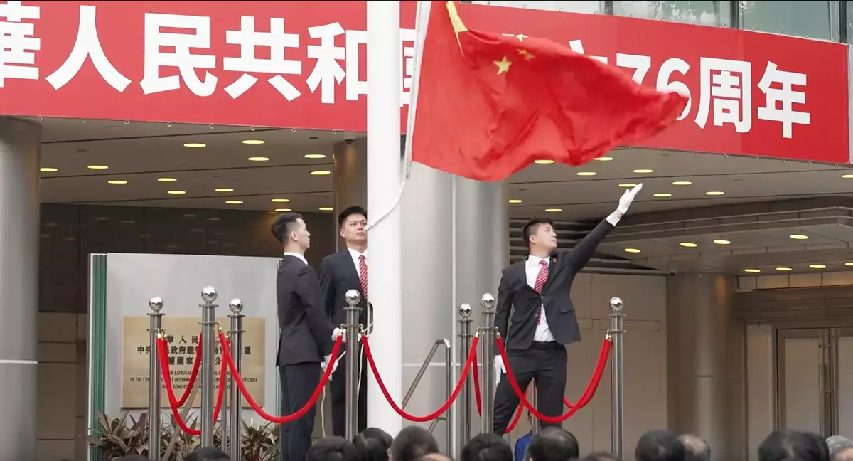 國安公署舉行國慶升國旗儀式。駐港國安公署圖片