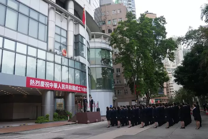 中央人民政府駐香港特別行政區維護國家安全公署舉行升國旗儀式,慶祝中華人民共和國成立76周年。