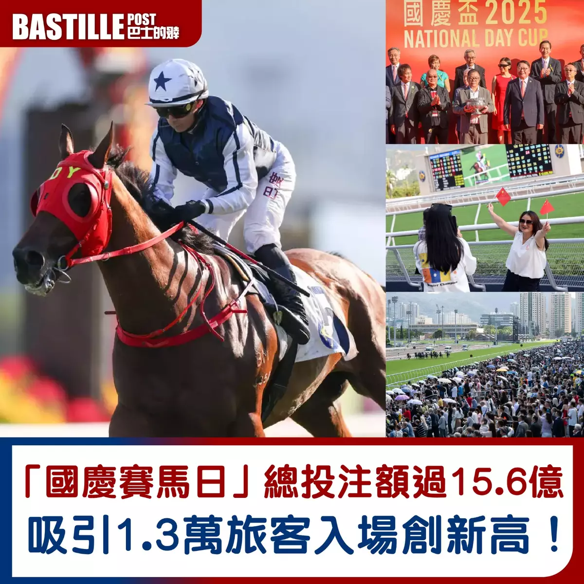 「國慶賽馬日」在沙田馬場圓滿舉行,賽事共吸引超過3.4萬人入場。在賽馬旅遊帶動下,入場旅客人數超過1.3萬人,創歷來賽馬日。