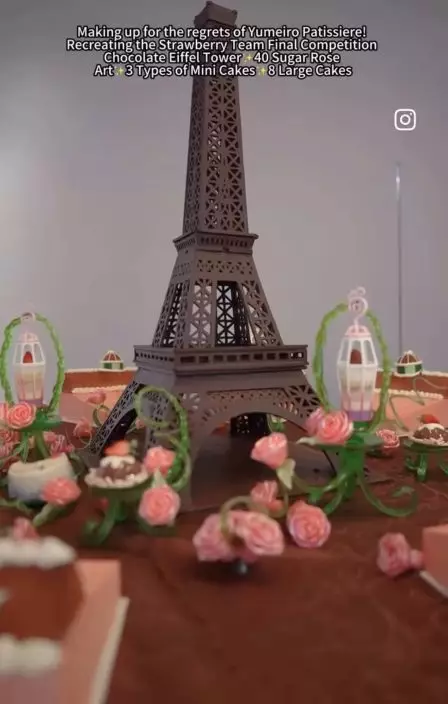 左左透露,製作過程十分艱辛,從繪製艾菲爾鐵塔平面圖到3D建模、矽膠翻模甚至借用老師廚房控制朱古力回溫均要親力親為。老師一句「做對了就不要有遺憾」,讓她堅持到最後,得以完成童年夢想,甚至還花費一個月製作40朵糖塑玫瑰拉花,期間曾被朋友笑言「一個月不見人影」。